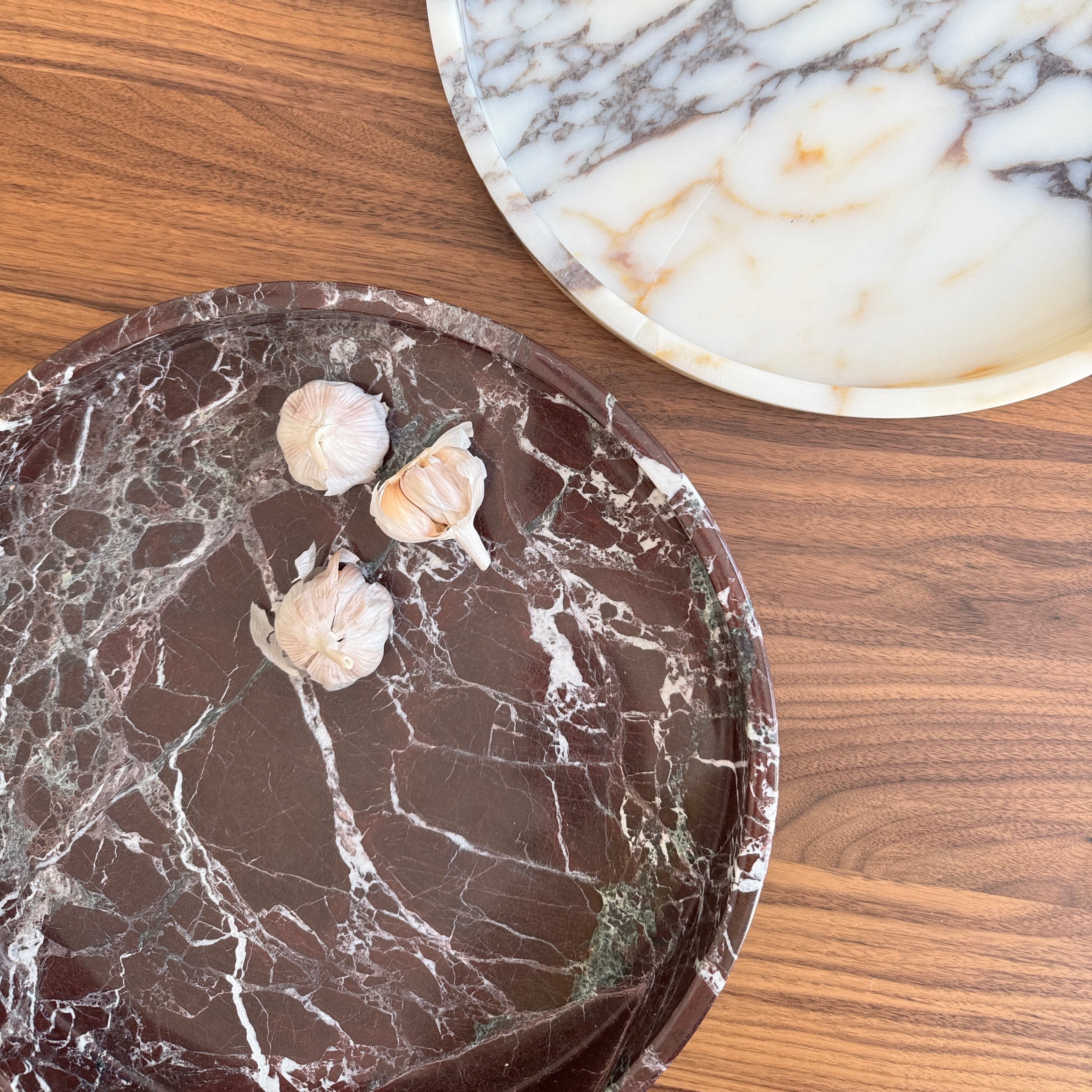 Een schaal die meer is dan een schaal. Met een diameter van 40 cm is onze Catch-All in burgundy marmer - ook wel bordeaux marmer - uit één enkel stuk steen gehouwen – elk met zijn eigen dramatische aders en natuurlijke karakter. Groot genoeg om een statement te maken, tijdloos genoeg om in elke setting op te gaan.